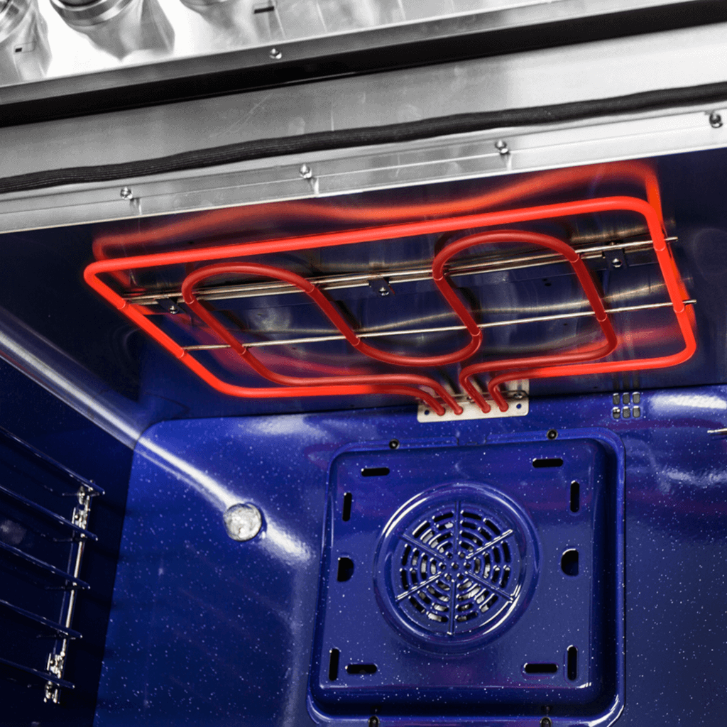 - Blue enameled oven interior