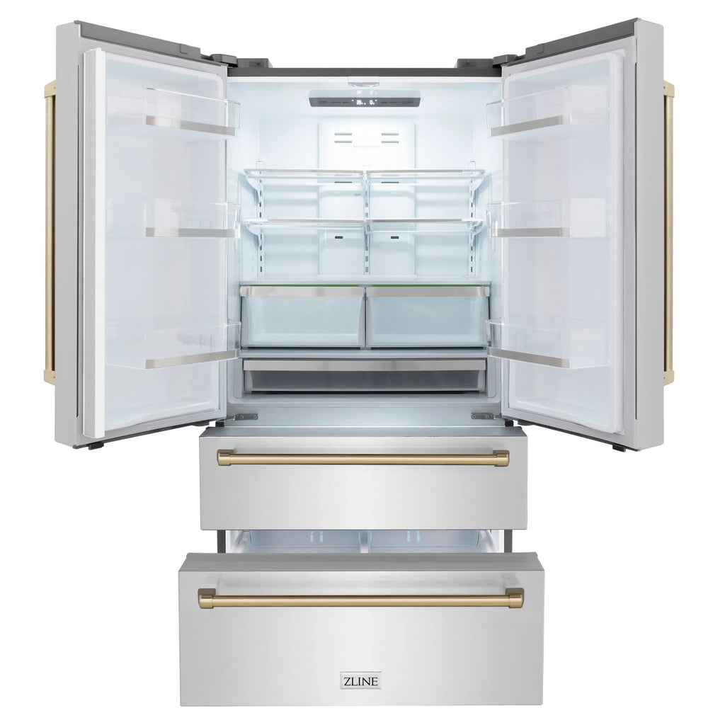 Experience ZLINE Attainable Luxury® with industry-leading kitchen and bath products that provide an elevated luxury experience, the Autograph Edition is inspired by the elegance of our home in Lake Tahoe. The Autograph Edition French Door Refrigerator in Fingerprint Resistant Stainless Steel is a counter-depth refrigerator that perfectly integrates into your kitchen with a built-in look that stands flush with your cabinets. Enjoy premium features such as 45dB while also saving on energy with high-efficiency cooling and an energy-saving mode. This fridge offers space for all of your favorite items with extra-large door storage bins, two freezer drawers, and adjustable shelving. ZLINE stands by the longevity and durability of its refrigerators while ensuring further protection and peace of mind with a worry-free warranty. Choose from a variety of finishes from ZLINE's Autograph Edition, including Champagne Bronze, Matte Black, and Gold. The beauty of the Autograph Edition is infinite, just like the beauty found in Lake Tahoe and the Sierra Nevada Landscapes. From our home to yours, enjoy a luxurious experience with every Autograph Edition Refrigerator.