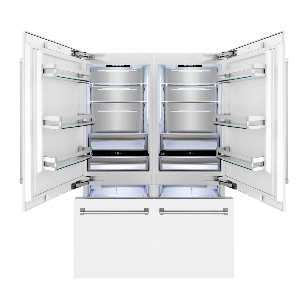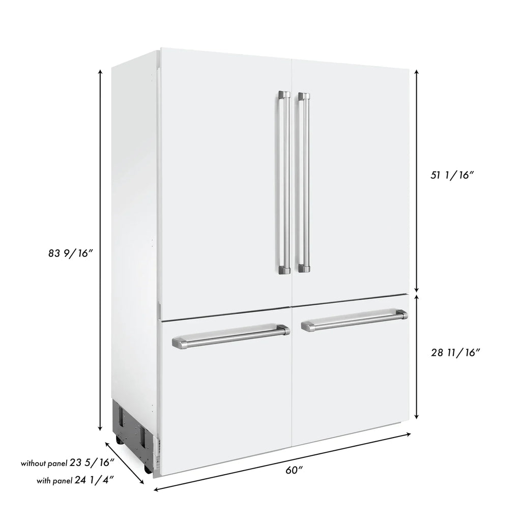 ZLINE 60-Inch 32.2 cu. ft. Built-In 4-Door French Door Refrigerator with Internal Water and Ice Dispenser in White Matte (RBIV-WM-60)