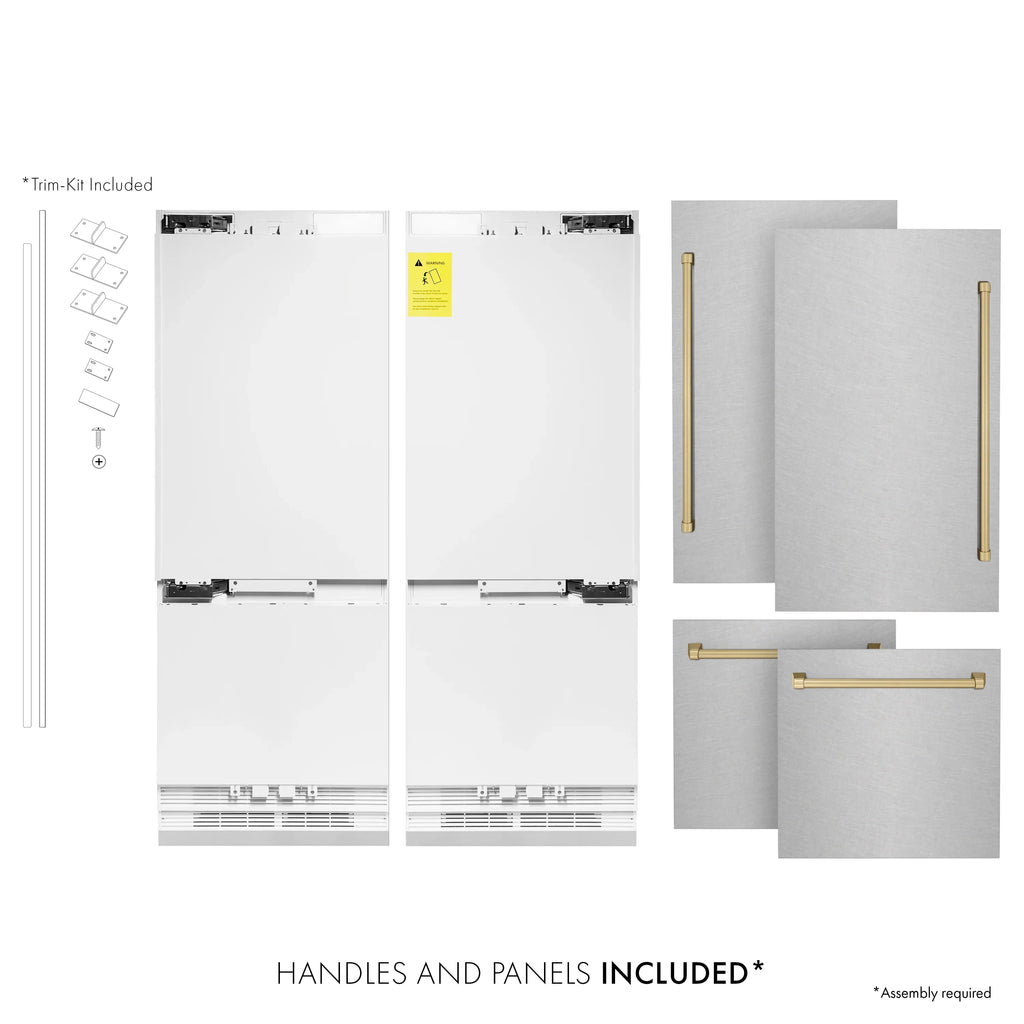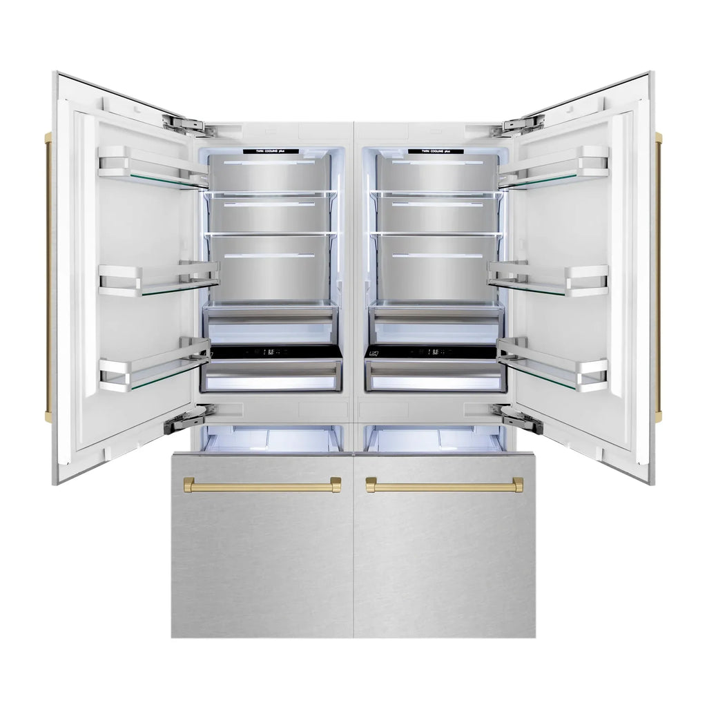 ZLINE 60-Inch Autograph Edition 32.2 cu. ft. Built-in 4-Door French Door Refrigerator with Internal Water and Ice Dispenser in Fingerprint Resistant Stainless Steel with Champagne Bronze Accents (RBIVZ-SN-60-CB)