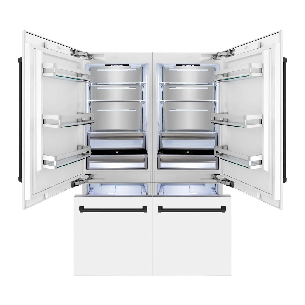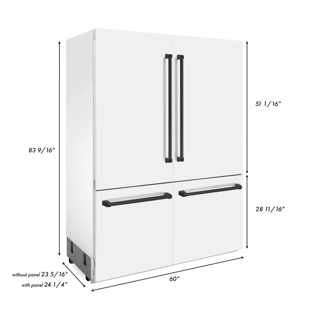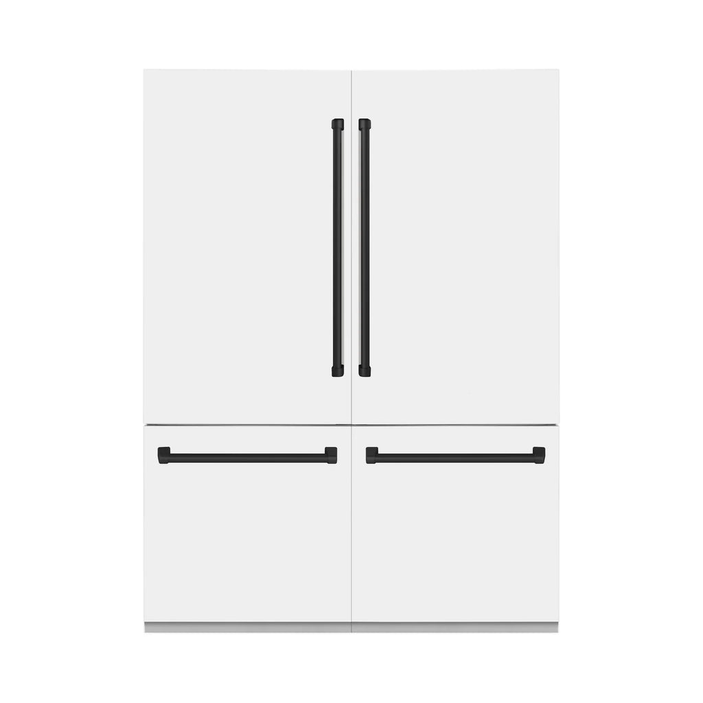 ZLINE 60-Inch Autograph Edition 32.2 cu. ft. Built-in 4-Door French Door Refrigerator with Internal Water and Ice Dispenser in White Matte with Matte Black Accents (RBIVZ-WM-60-MB)